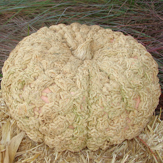 This one is from LaBeq at http://www.labeq.etsy.com/. Her description: This odd little crocheted pumpkin can be used as decoration, or, if you are like me and my former coworkers, kept at your desk and lobbed over cubicle walls when things start getting boring at work.